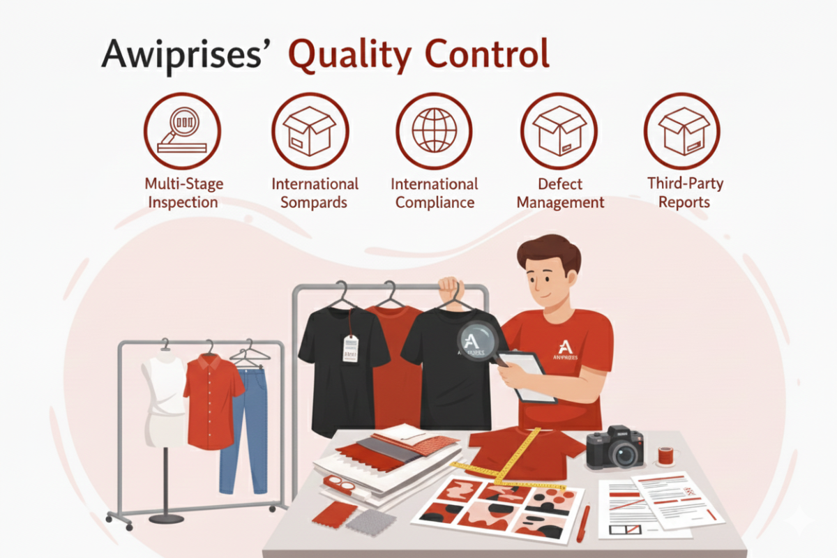 Awiprises follows a strict multi-stage quality control process to ensure every garment meets international standards. We provide photo documentation, detailed quality reports, defect management, and optional third-party inspections for complete transparency.