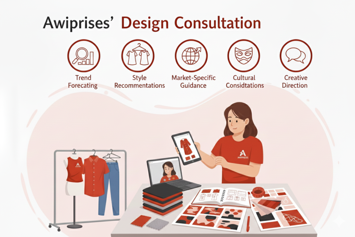 Awiprises offers free design consultation to help brands make informed creative decisions. Our experts provide trend forecasting, style recommendations, and market-specific guidance while considering cultural preferences. Consultations are available through scheduled video calls.